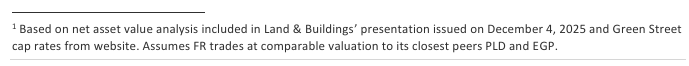 We strongly believe that with the right governance, FR shares can trade to our estimated NAV of $73 per share, representing over 20% upside from current levels. The only thing standing between shareholders and this value is a Board that refuses to act. It is time for that to change.