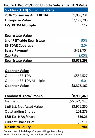 Today, with the Company’s valuation near all-time lows, we see an even more compelling re-rating opportunity from separating the real estate, with over 75% immediate upside based on 2026 consensus estimates (Figure 1). Upside could be as much as 130% if 2026 EBITDA recovers to $1.1 billion (FUN’s original 2025 guidance).
