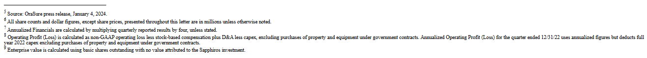 - The Imperative for a Strategic Review. OraSure must evaluate a sale of the entire business alongside its current plan. We will represent and advocate for all shareholder interests in this process upon our appointment to the Board to ensure that the outcome delivers the best possible returns to shareholders.