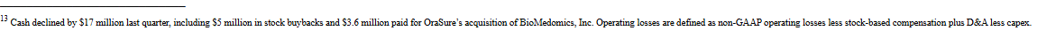 $3.61. In Q4 2024, the Company’s non-COVID business was generating annualized revenue of $146 million—essentially flat with Ms. Eglinton Manner’s first quarter as CEO—while losing approximately $7.5 million per quarter.10 A board focused on accountability would have paused and reassessed. This Board doubled down.