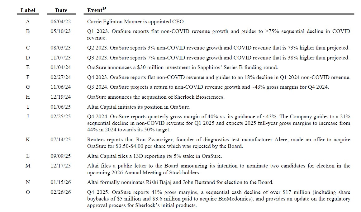 Altai Capital began conversations with OraSure regarding Board representation in November 2024. Tellingly, Ms. Aspinall resigned from the Board on October 28, 2025, after our ongoing discussions made clear that we would formally seek to have her replaced at the upcoming Annual Meeting if we could not reach an agreement. Five of the six Board members who approved the Sherlock acquisition, including Ms. Eglinton Manner, remain on the Board today. They continue to bear responsibility for their oversight (or lack thereof) in the Sherlock acquisition process and should be held accountable.