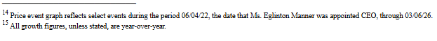 We believe boards should pay extraordinary compensation only when management achieves extraordinary results. When this Board chose to support Ms. Eglinton Manner’s high-risk capital allocation strategy, it should have tethered the vast majority of her compensation directly to share price performance. It should have put her pay at risk. It did not.