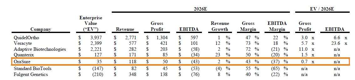 Against this backdrop, OraSure faces three realistic paths: (i) grow revenue through organic investment and better use of its capacity, (ii) acquire established businesses at fair prices that bring additional volume, enabling the Company to rationalize costs and reach profitability, or (iii) sell the business to a larger acquirer that can provide the scale and distribution OraSure needs. Given the Company’s track record with options (i) and (ii), we believe option (iii) deserves serious and immediate evaluation.
